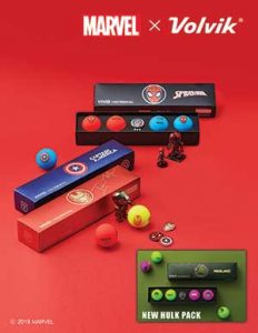 Hero up this holiday season with Volvik’s Marvel four-ball gift set. Choose from Marvel’s most popular heroes: Captain America, Iron Man, Spider-Man or The Hulk. The matte-finish, three-piece Vivid high-performance golf balls feature Volvik’s new oversized energy core. Each gift set includes four Vivid double Marvel-logoed golf balls and a magnetic hat-clip ball marker.