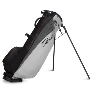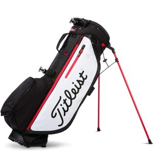 The bag features High-grade aluminum legs, an advanced hinged bottom for best-in-class stability, a Self-balancing, convertible strap system and Dual density foam straps for long lasting comfort. Pockets include a Waterproof pocket to protect your valuable and a High-capacity, Full-length apparel pocket. The Lightweight, low profile top cuff features full-length dividers.www.Titleist.com • $225
