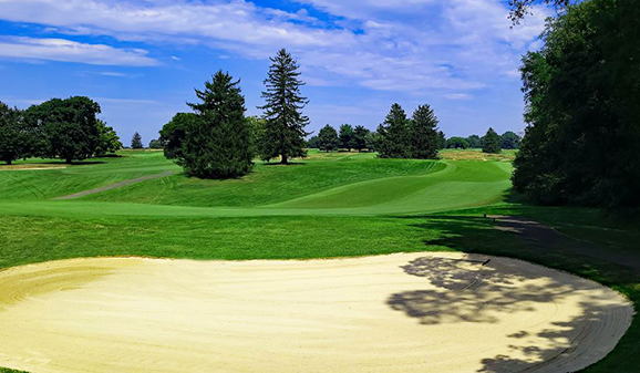 The last of the par 3s is the 17th hole, the famous Biarritz! At 201 yards from the Member Tees, it’s the longest – and most difficult – par 3 out here. The green is enormous, almost 75 yards long, with bunkers on both sides running the entire length of the green. The swale between the front and back portions of the green is one of the deepest I have played and sits four feet below the front and back sections. With the Biarritz playing about two-thirds of the way into the green, back pin locations are very difficult. The 17th green is usually the last green mowed in the morning and requires two talented greenskeepers to do the job. Even then, getting the job done takes twice as long!