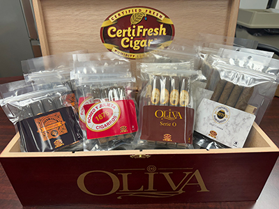For over 25 years, CertiFresh Cigar® has offered the finest brand-name cigars that are delivered in a perfectly humidified custom package. Boveda’s patented two-way humidity control device is the cornerstone of CertiFresh packaging. Freshness of cigars is guaranteed for one year due to the packaging, so golf courses do not have to maintain a traditional humidor to carry the product.