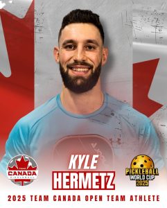 Kyle Hermetz: After only 3 years of playing pickleball, at 29, Kyle represented Team Canada at the Pickleball World Cup this past October in Fort Lauderdale.  Back home, just west of Toronto, he is a leader on the York Yeti’s, competing professionally in the Canadian National Pickleball League.  He sports a Dupr Rating of 5.7, and has attained Level 1 and Level 2 Certified Pickleball Coach. Kyle is dedicated to helping players elevate their game through structured training methods and game-based coaching.